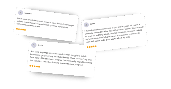 The same French Supercharger model that French learners from all over the world are now using to learn 94% of French in as little as a few weeks…
